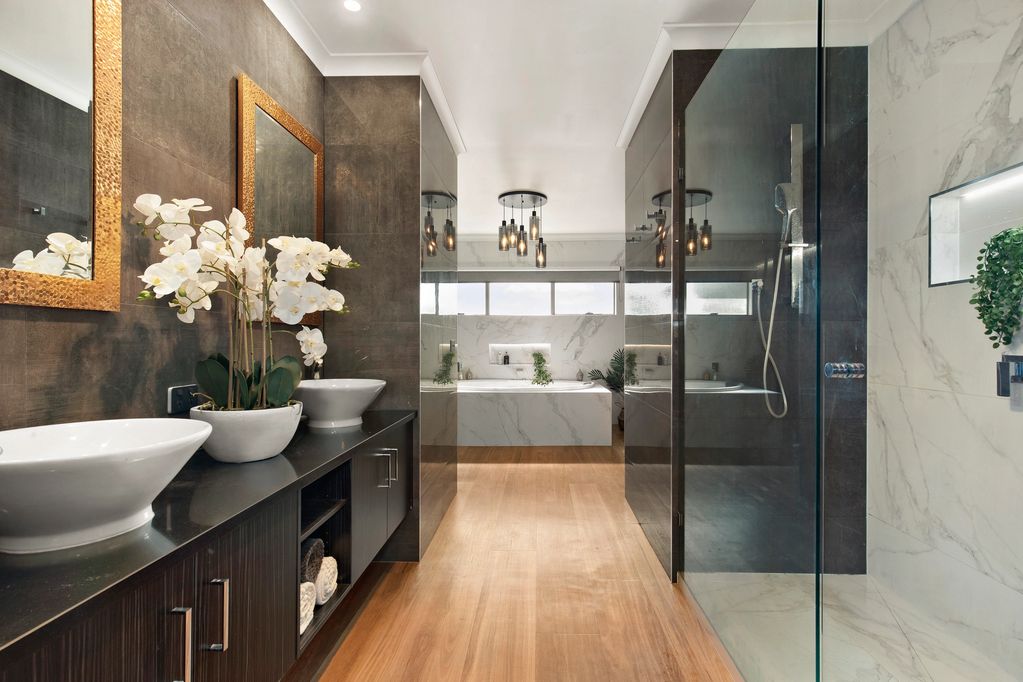 The use of natural stone , marble and timber finished gave a very earthy stylish modern feel to the bathroom still utilising full accesibility to the uses of a bathroom